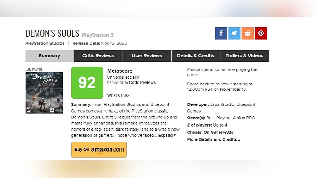 «Обязательно для прохождения»: Demon's Souls получила 92 балла на Metacritic