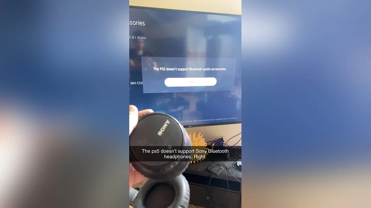 Пользователь Reddit под ником Smolro сообщил, что не сумел подключить наушники Sony к консоли. На экране при этом выдавалось сообщение, что PS5 не поддерживает беспроводные аудиоустройства. Подключение через устройство Roku тоже не сработало.
