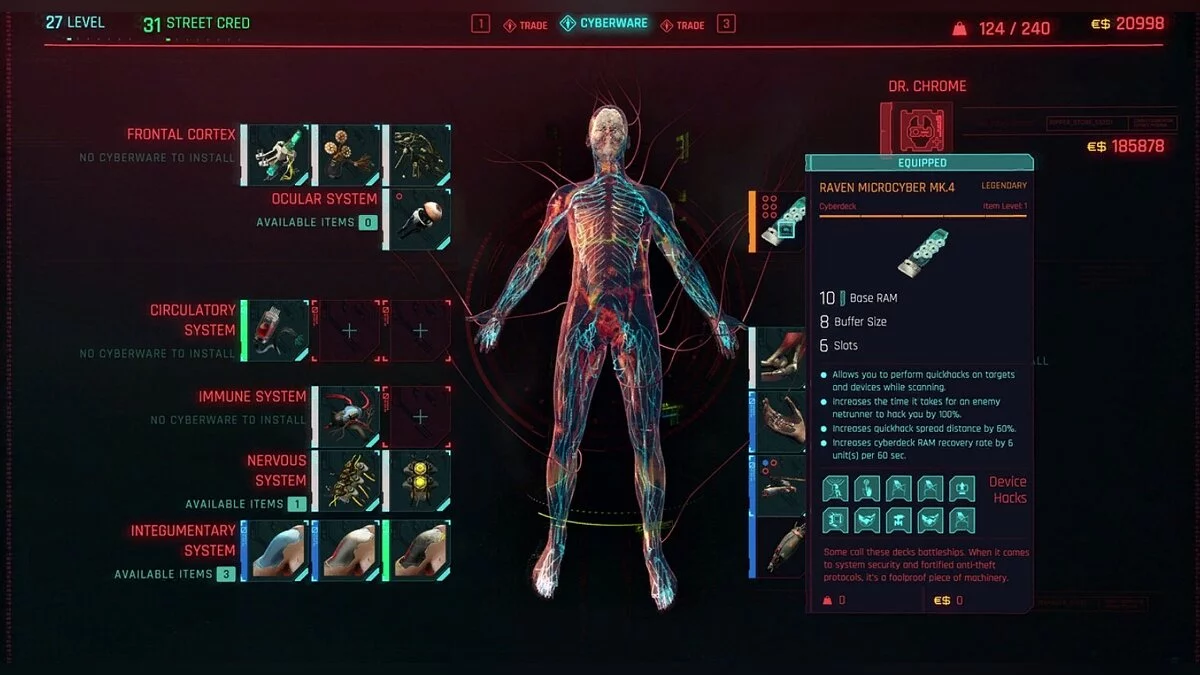 В ролике рассказали об истории Найт-Сити, показали окно развития персонажа, а также раскрыли сюжетную завязку. Главный герой крадет безумно дорогой биочип, однако в процессе кражи его защитная оболочка ломается. Чтобы сохранить чип, Ви вживляет его в свою голову.