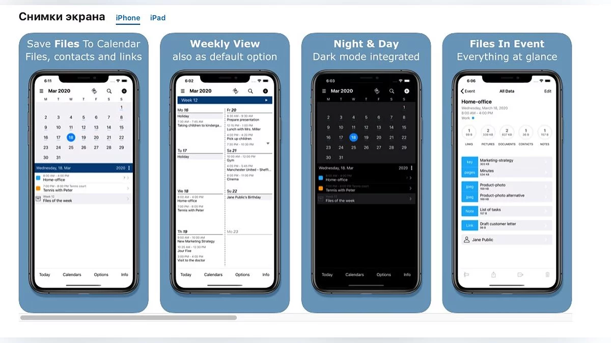 - FileCalendar — приложения для профессиональной организации встреч и событий. Представляет собой календарь с расширенным функционалом. (Ссылка для загрузки)