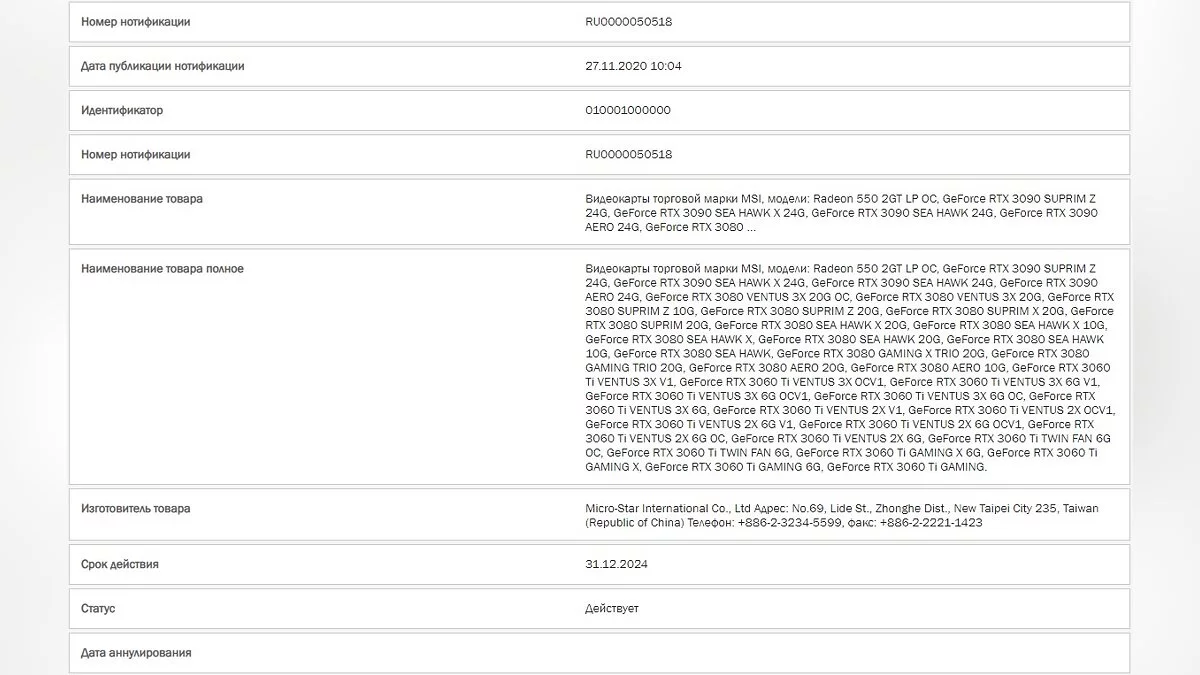Ранее ходили слухи, что компания отменила эти карты, но, похоже, они всё-таки появятся. Более того, их анонс якобы запланирован уже на декабрь. На это указывает тот факт, что в базе данных Евразийской экономической комиссии появились записи о таких решениях. Их подала туда компания MSI.