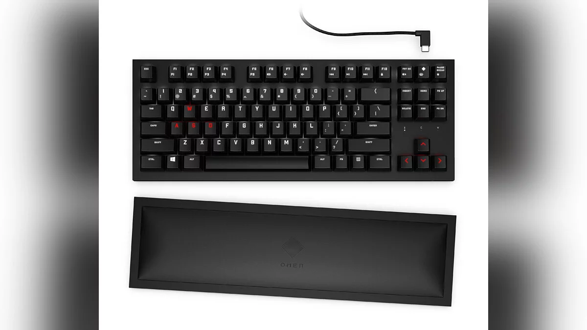 - OMEN Spacer. Минималистичная беспроводная клавиатура без правого блока кнопок NumPad, которая распознаёт неограниченное число одновременно нажатых кнопок. Оснащена отсоединяемой мягкой подставкой для кистей рук и функцией быстрой зарядки (5 минут «на кабеле» позволяют играть 50 минут). Аккумулятор рассчитан на 75 часов бесперебойной работы.