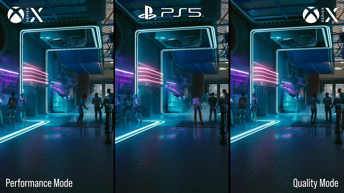 Специалисты Digital Foundry провели ещё одно тактирование Cyberpunk 2077. На сей раз игру «гоняли» на PS5 и Xbox Series X/S в разных режимах. Хотя игра и функционирует в режиме обратной совместимости, однако полностью раскрыть потенциал консолей ей не удалось.