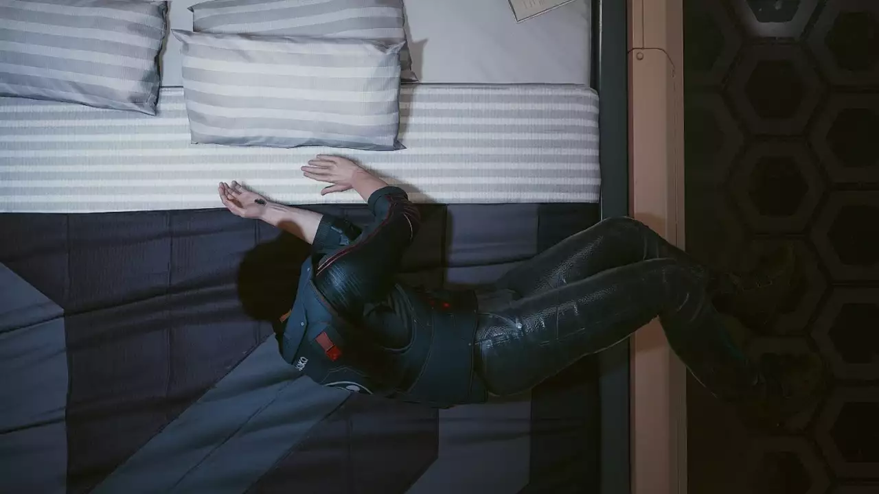 А как спать? Ви в Cyberpunk 2077 спит в очень странной позе — как это выглядит со стороны -