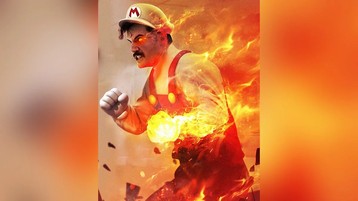Художник изобразил действительно «суперского» и брутального Марио в стиле Человека-Факела