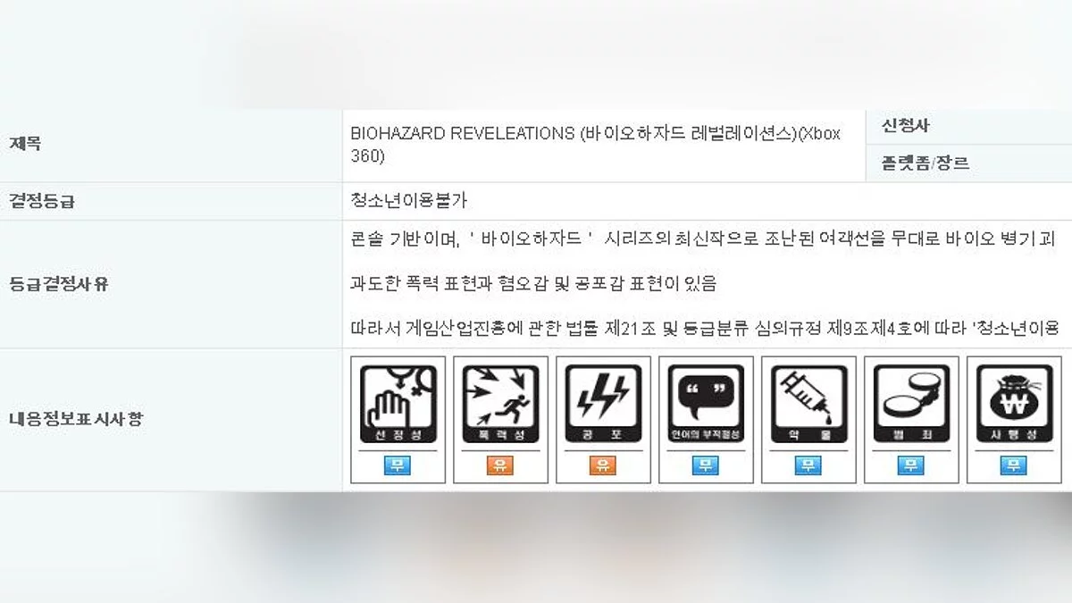 Возрастные категории для игр и фильмов очень полезны, ведь благодаря ним мы можем узнать о новых играх и фильмах (КЭП). Вот и с 3DS-эклюзивом Resident Evil: Revelations произошла подобная история — игра засветилась в возрастных рейтингах Южной Кореи.
