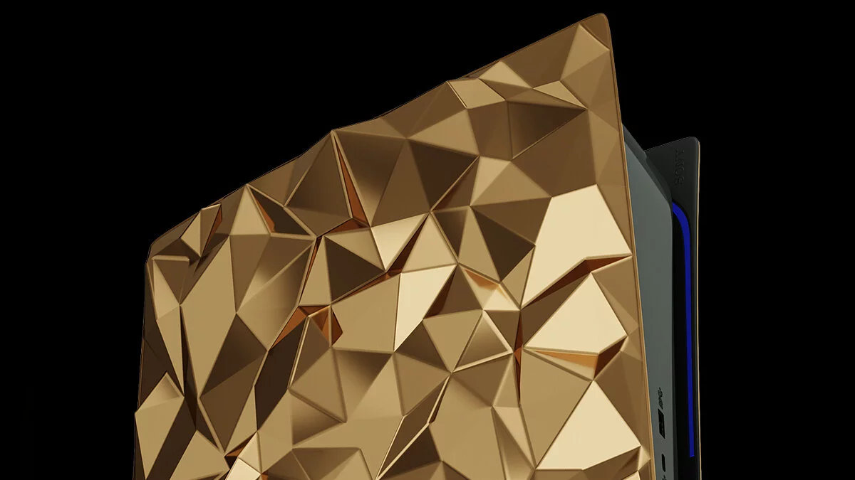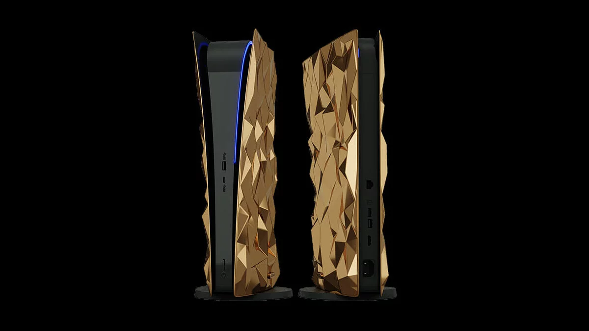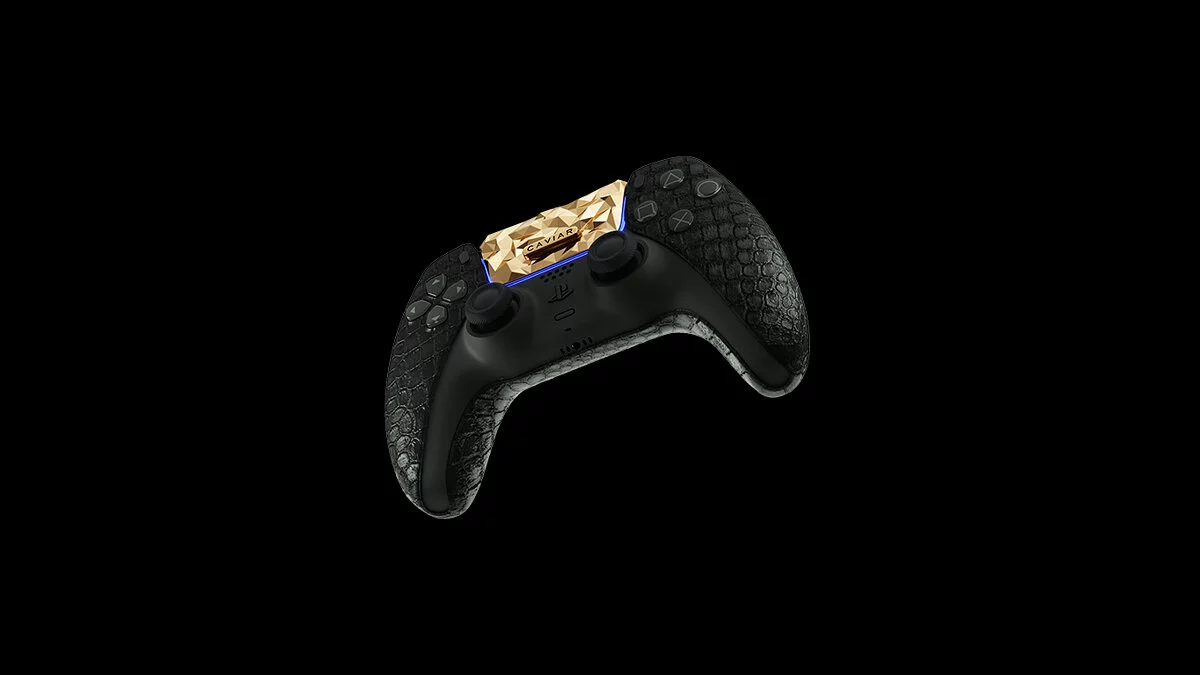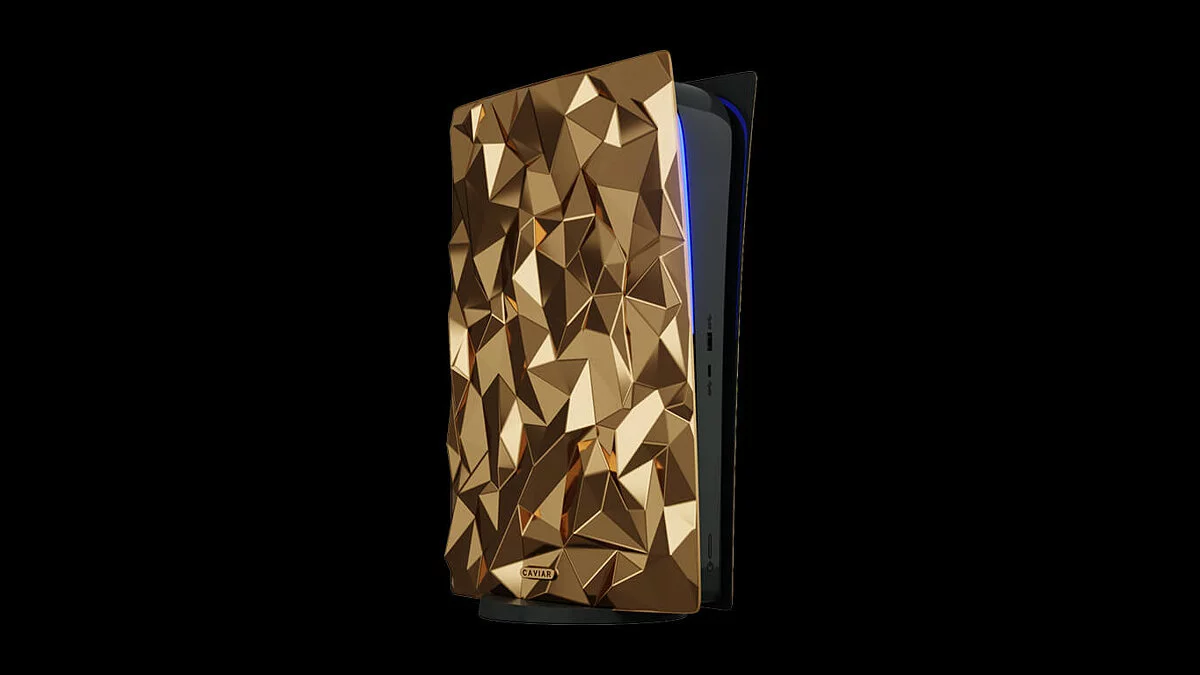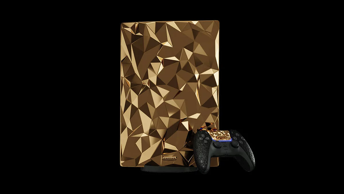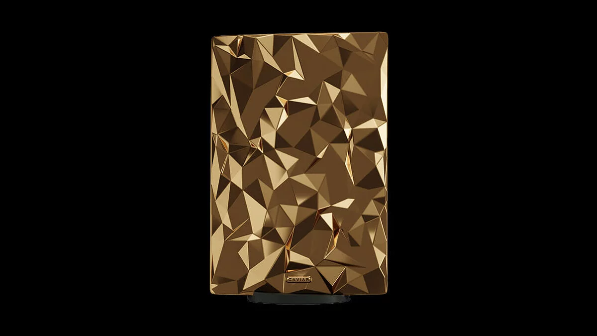 Компания представила версию PS5 Golden Rock, которая получила корпус из «мятого» чистого золота 750-й пробы. На отделку ушло порядка 20 кг драгоценного металла. Под стать новинке и геймпад — золото 750-й пробы и натуральная кожа крокодила плюс фирменная табличка Caviar.