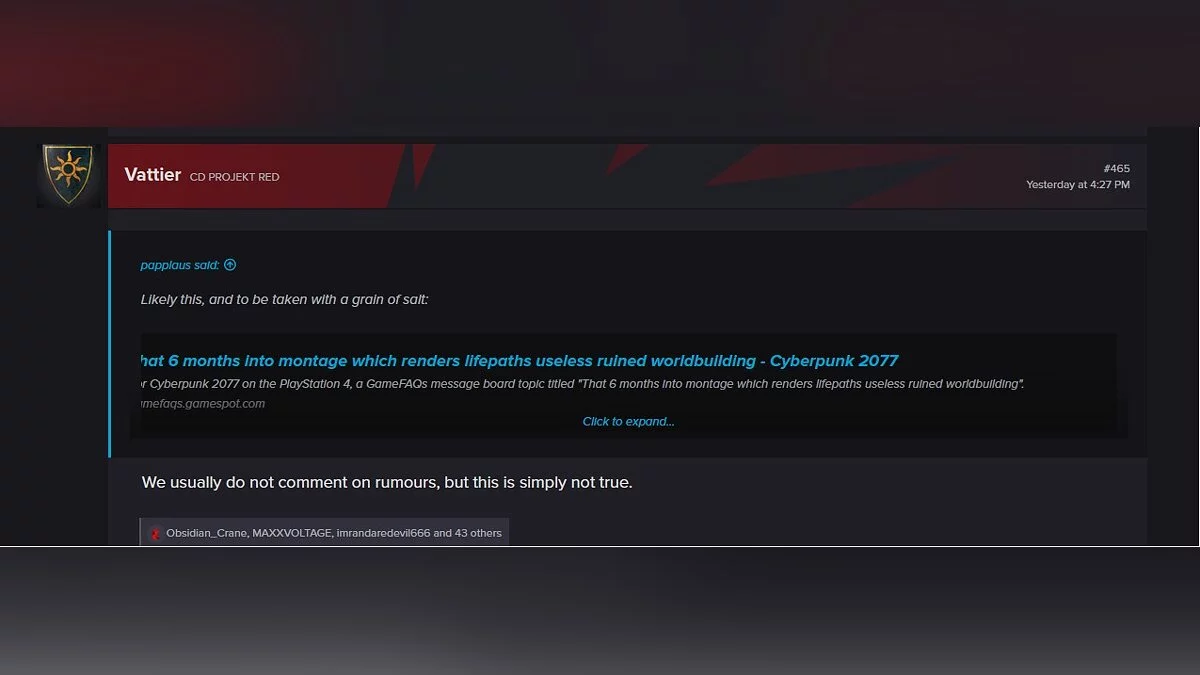 Один из официальных представителей студии CD Projekt RED опроверг ранее приведённые данные, хотя и ограничился очень коротким заявлением.