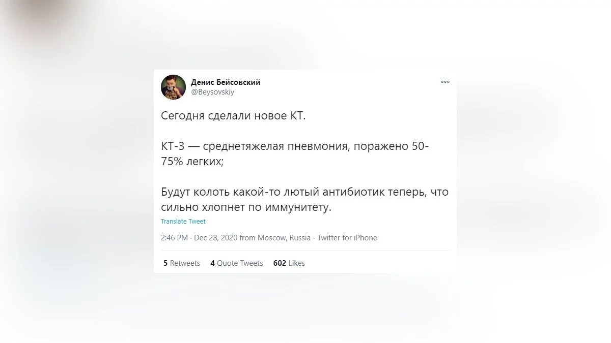 2 января Бейсовского выписали, а 6 января Денис старался найти лекарство, которое ему не могли достать. С этого момента блогер перестал писать о своем состоянии.