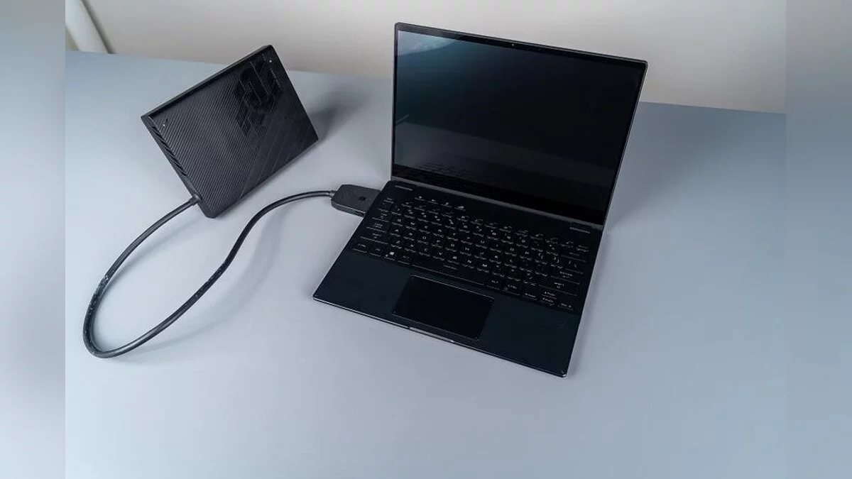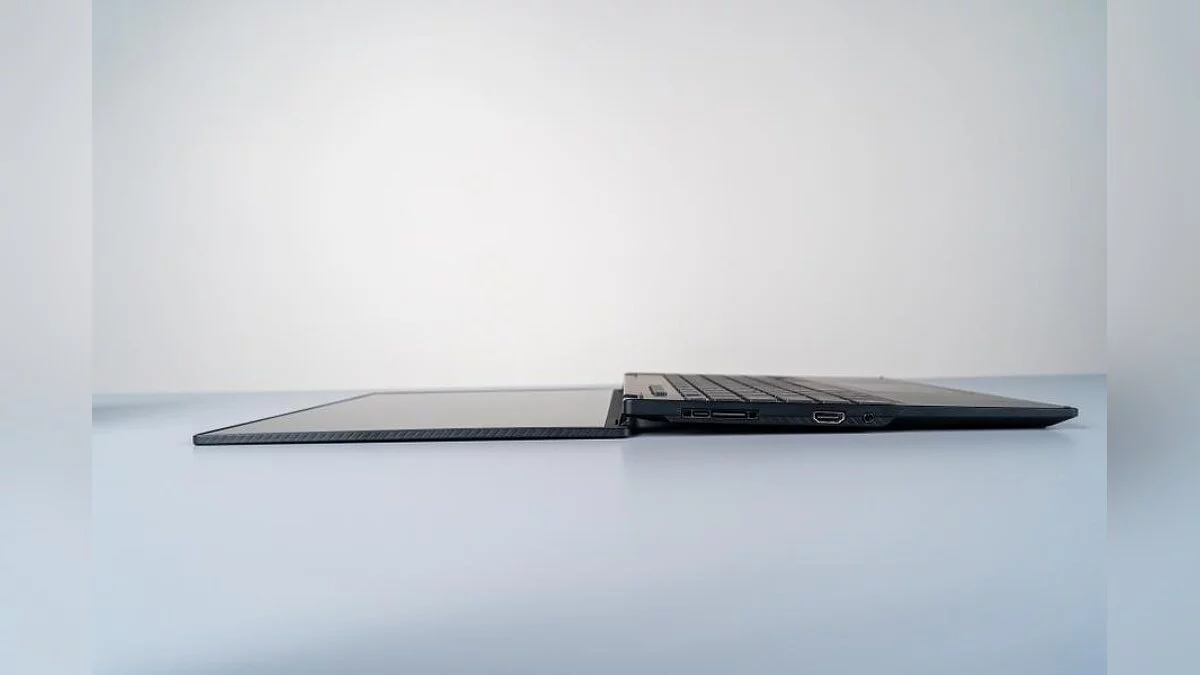 Следующим идёт ноутбук-малютка, который, между тем, может похвастаться мощнейшими параметрами. Ведь он умеет работать со штатной внешней видеокартой через порт Thunderbolt 3 и проприетарный разъём.