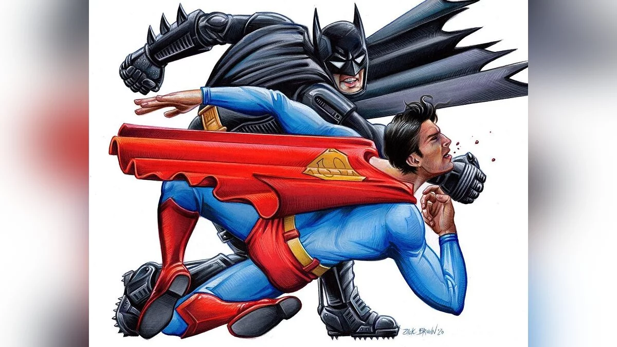 А вот как автор представил знаменитую битву Бэтмена и Супермена.