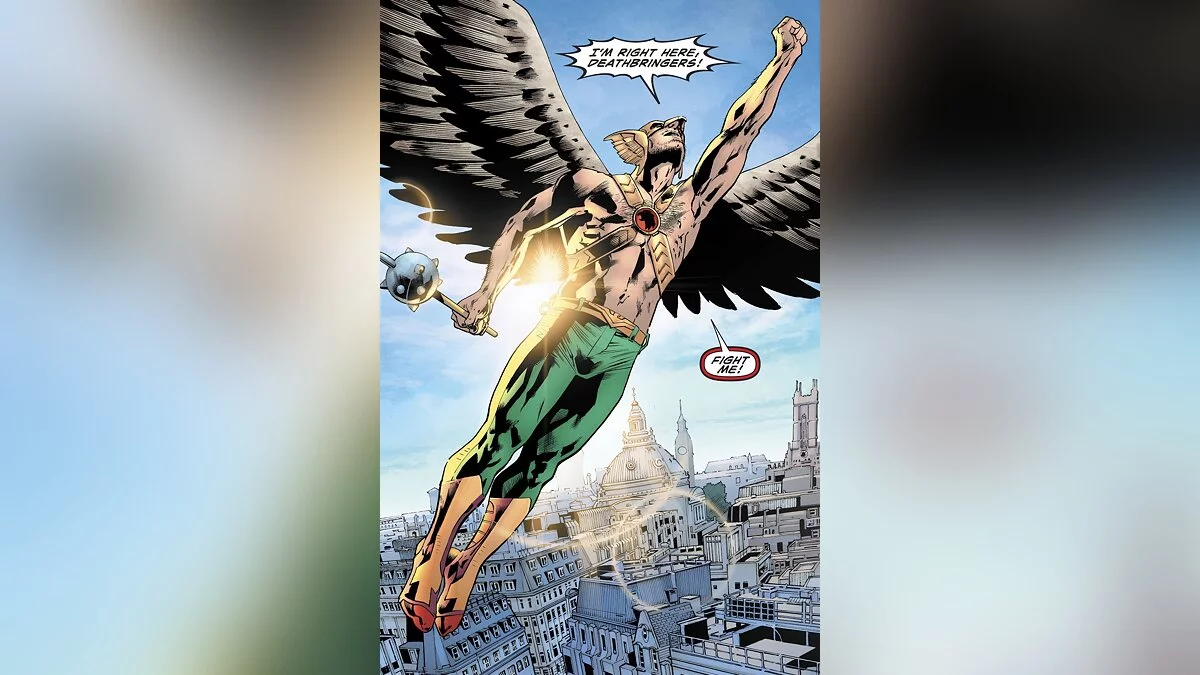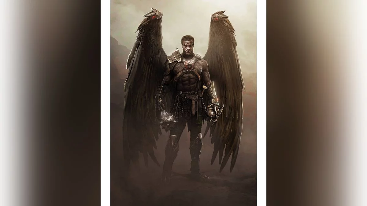 На картинке оказался запечатлен супергерой Человек-ястреб (Hawkman). Причем речь не идет о аутентичном образе героя из комиксов. Bosslogic взял за основу внешность актера Элдиса Ходжа (Aldis Hodge), который должен сыграть роль Человека-ястреба в фильме «Черный Адам».