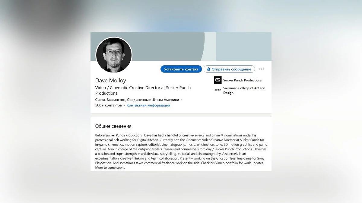 На это указывает запись в LinkedIn Дэйва Моллоя (Dave Molloy), креативного директора студии. В разделе «О себе» говорится, что специалист «в настоящее время работает над игрой Ghost of Tsushima для Sony PS5». Возможно, Моллой просто не обновил данные после релиза игры, хотя это выглядит странно.