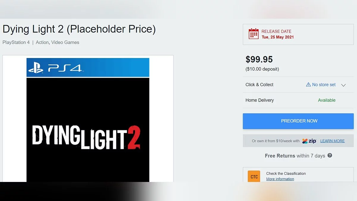 Если верить ритейлеру EB Australia, то Dying Light 2 выйдет уже 25 мая 2021 года.