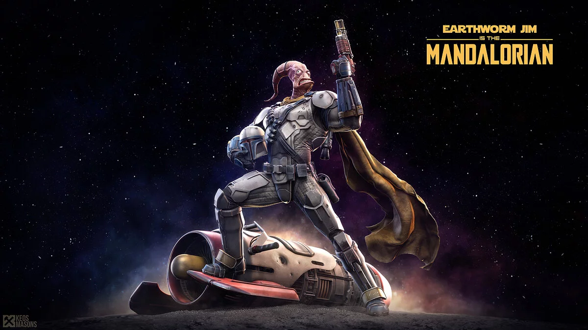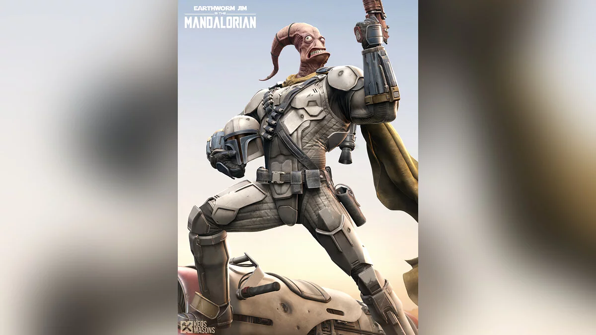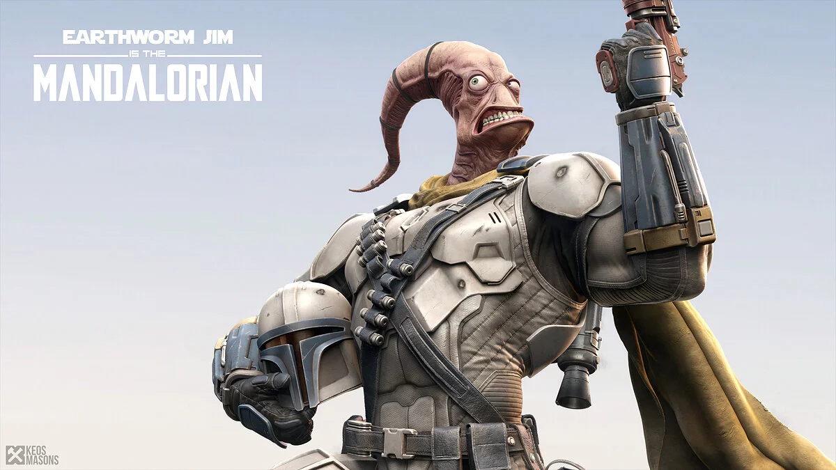 На сайте ArtStation появились новые изображения по сериалу «Мандалорец». Цифровой художник Марко Плуфф (Marco Plouffe) опубликовал серию артов, где в образе сурового наёмника показал Червяка Джима из одноименной серии игр Earthworm Jim.