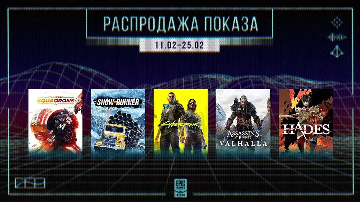 За три часа до начала шоу, 11 февраля 19:00 МСК, в Epic Games Store запустят специальную показ-распродажу, которая продлится до 25 февраля. На ней можно будет выгодно приобрести Cyberpunk 2077, Star Wars: Squadrons, Assassin's Creed Valhalla, Hades и другие игры.