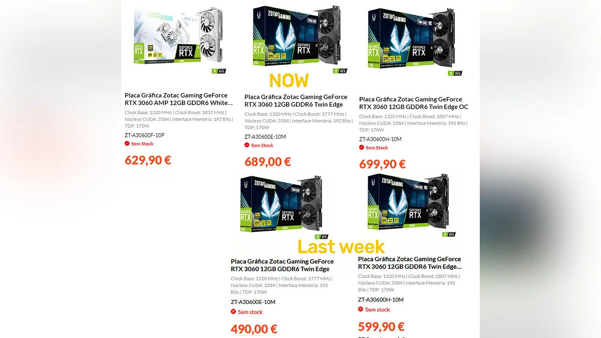 Европейские магазины накручивают цены на видеокарты RTX 3060 до релиза. Вот сколько придётся заплатить
