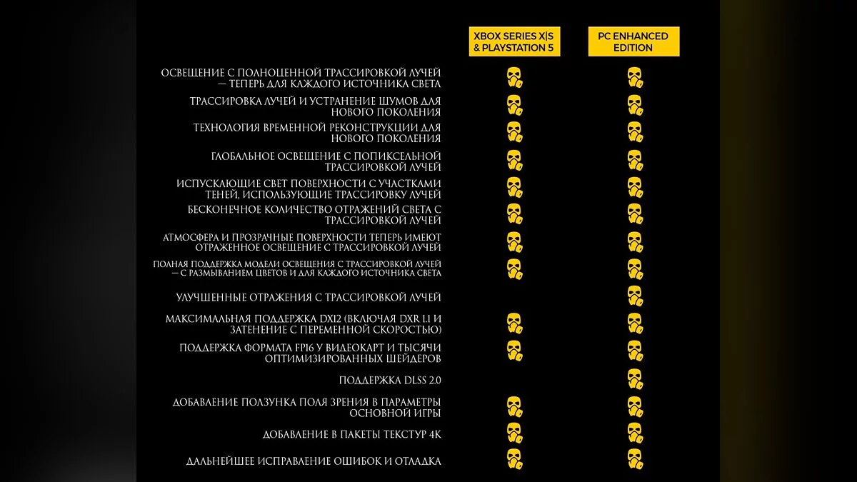 Некстген-патч также выйдет на PlayStation 5 и Xbox Series X. Там игра будет работать с разрешением 4K, частотой 60 FPS и полноценной трассировкой лучей. Единственное, в консольных версиях не будет реализованы улучшенные отражения и DLSS 2.0. В случае с Xbox Series S разработчики рассчитывают на разрешение 1080p, но с сохранением всех функций.