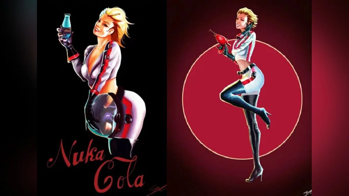 Отметим, что Ядер-Гёрл появилась в качестве рекламного персонажа в Fallout 4. Сам образ появился ещё до войны, однако игроки познакомились с ним уже в послевоенном мире.
