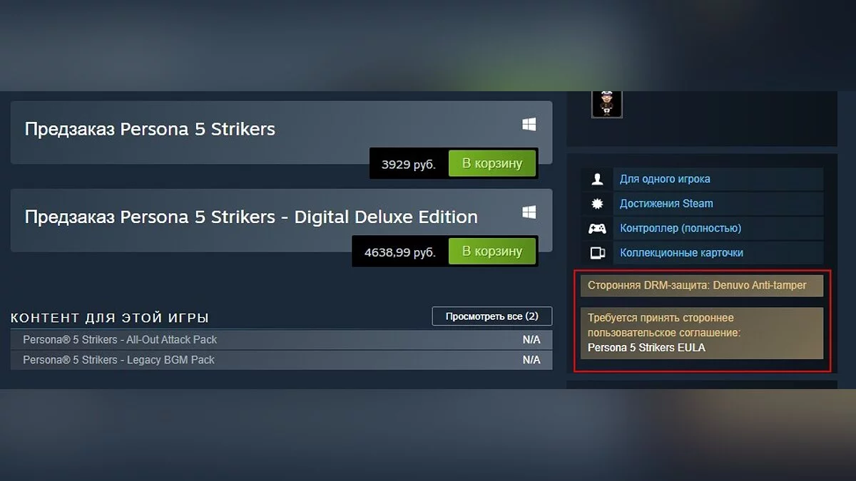 Persona 5 Strikers выходит 23 февраля, однако владельцы Deluxe-издания могут запустить игру уже сейчас. Как оказалось, данное издание не содержит защиту Denuvo, хотя на странице в Steam указано обратное. Как результат, новинку сразу же выложили в открытый доступ.