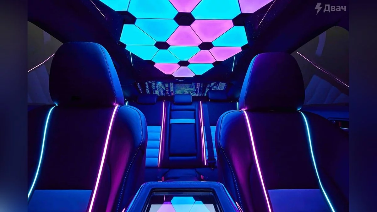 Новинка получила интерьер в стиле «Неоновый Токио» с акриловыми панелями и эффектом «капель дождя». Окна изнутри имеют покрытие Smart Tint, которое можно затемнить. А на заднее стекло можно вывести фон для ведения стрима.