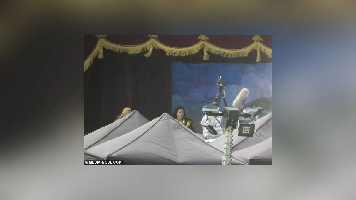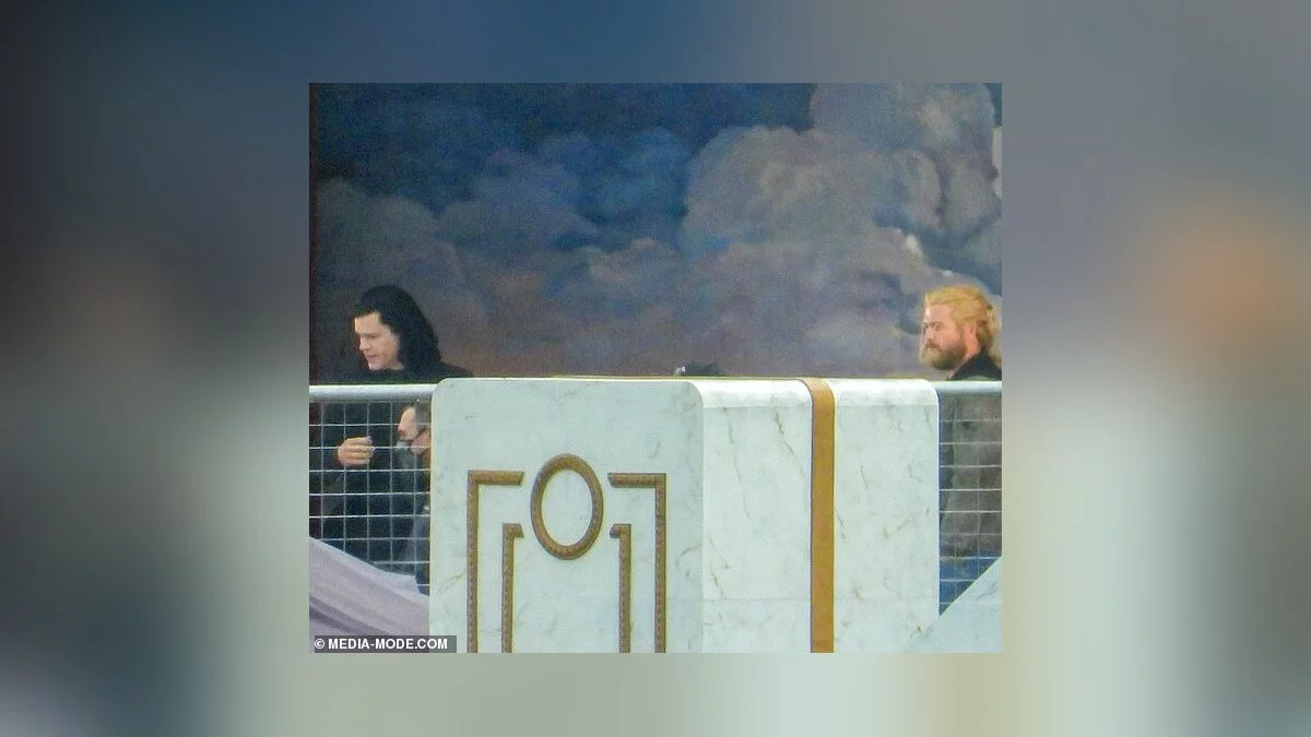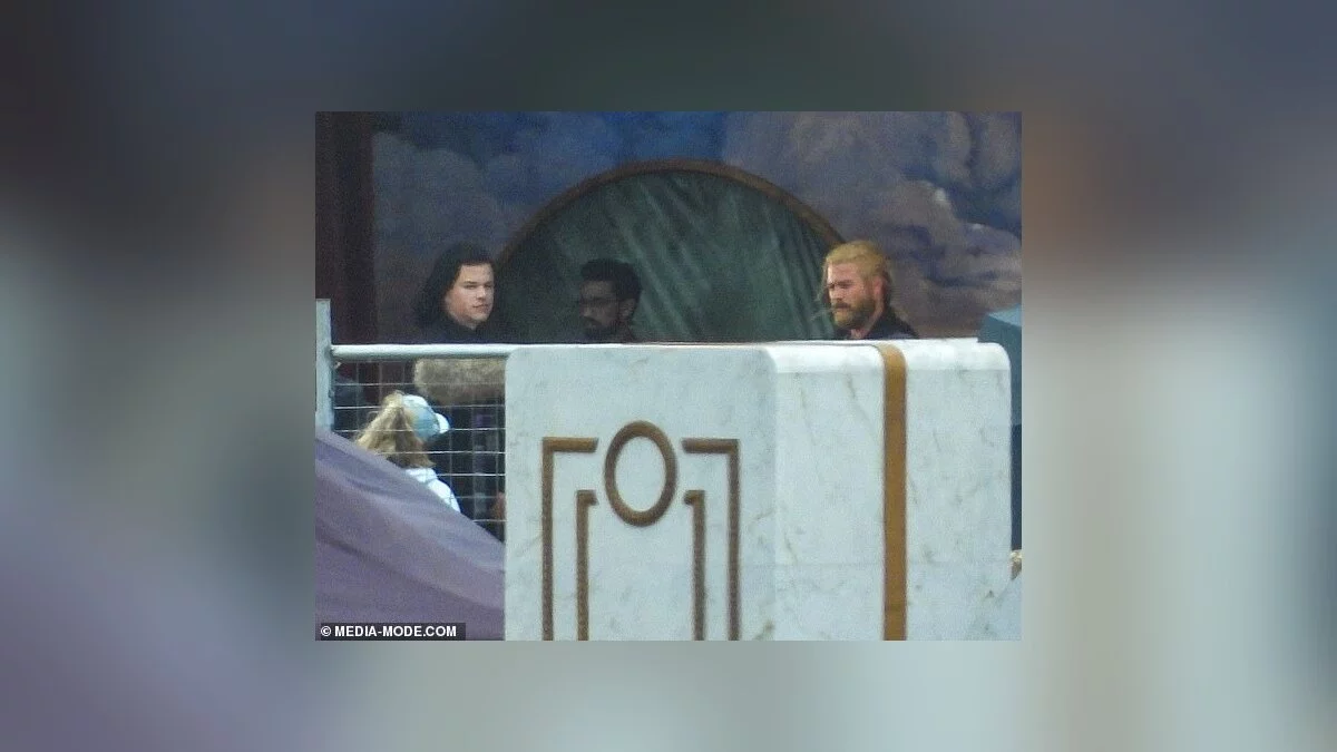 По всей видимости, в фильме нам покажут еще одну постановку: на это в том числе намекают декорации. На снимках также можно увидеть Сэма Нила (Sam Neill) в образе Одина и режиссера Тайку Вайтити (Taika Waititi).