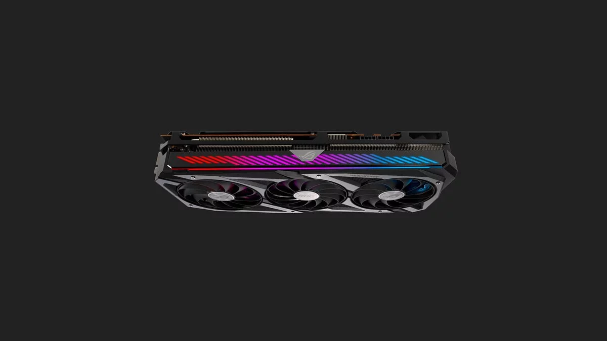 Видеокарта ROG Strix Radeon RX 6700 XT выделяется ярким внешним видом и внушительным охлаждением с тремя кулерами — из-за этого устройство занимает три слота. Форм-фактор позволил вместить семь тепловых трубок, а технология MaxContact увеличила площадь контакта между графическим процессором и радиатором. Кроме того, подсветка видеокарты поддерживает технологию Aura Sync, с помощью которой ее можно синхронизировать с подсветкой других устройств.