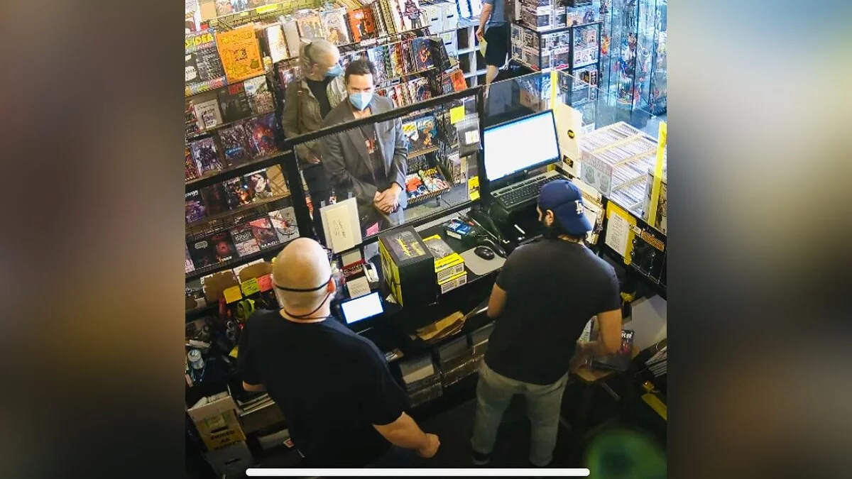 Это уже второй раз, когда актер приезжает в Golden Apple Comics. На этих выходных Ривз купил фигурки по Cyberpunk 2077, а также взял несколько выпусков собственного комикса BRZRKR. Он, напомним, рассказывает о бессмертном полубоге, который работает на США.