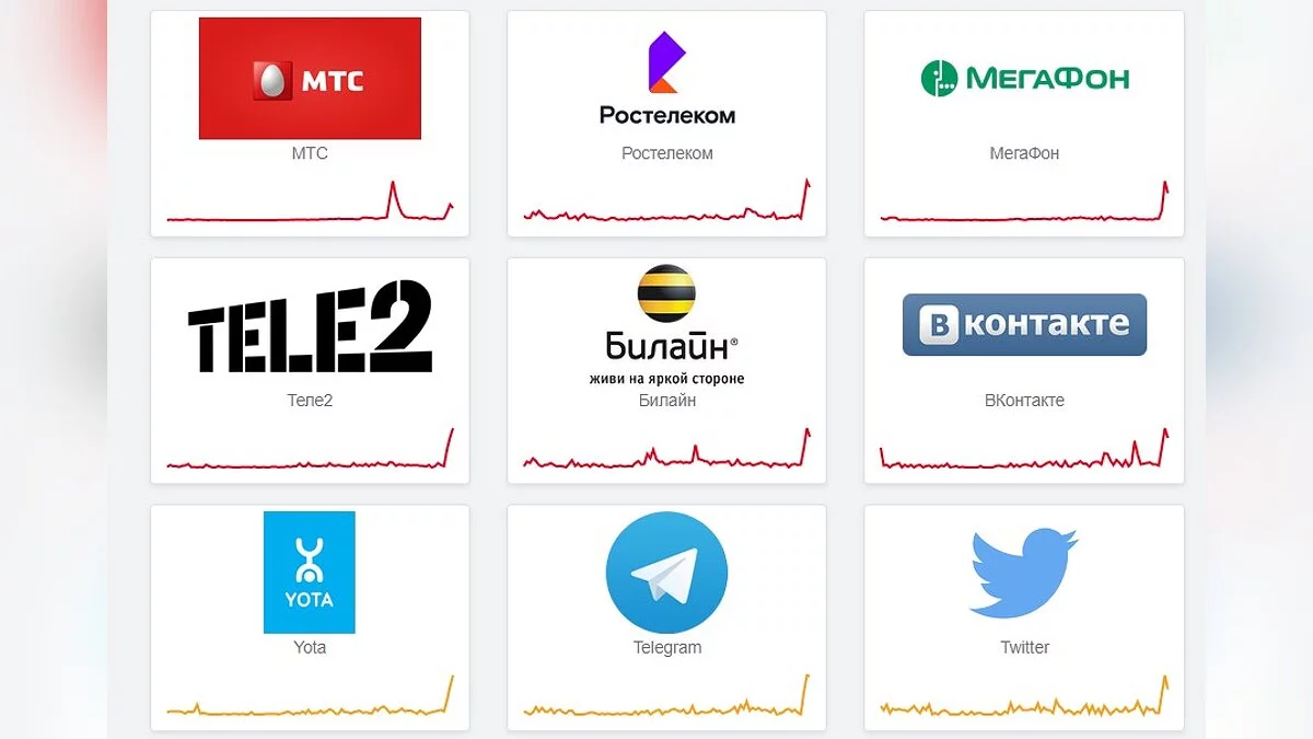 Примерно в это же время пользователи начали жаловаться на сбои в работе Twitter, Telegram и ВКонтакте, а также у многих провайдеров, включая МТС, Мегафон и Билайн.