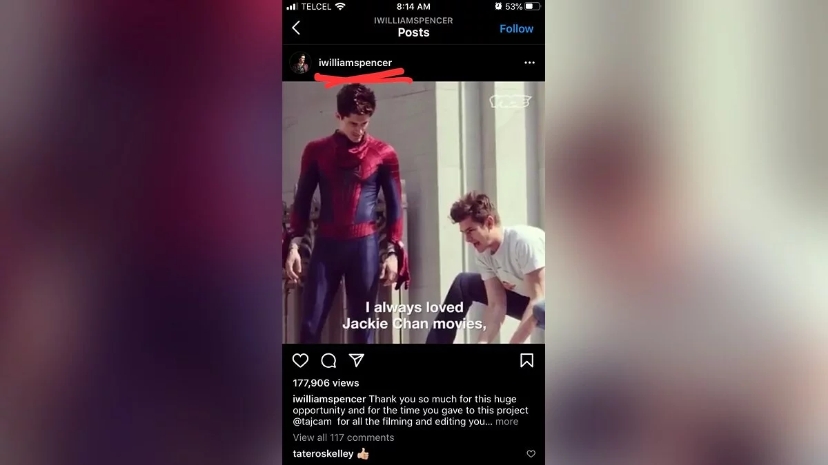 Один пользователь обратил внимание на аккаунт дублера Эндрю Гарфилда по имени Уильям Спенсер (William Spencer), который работал с ним в двух фильмах о Пауке. Он выложил ролик с неизвестных съемок, где отметил другого каскадера — Грега Таунли (Greg Townley), который является дублером Тома Холланда.