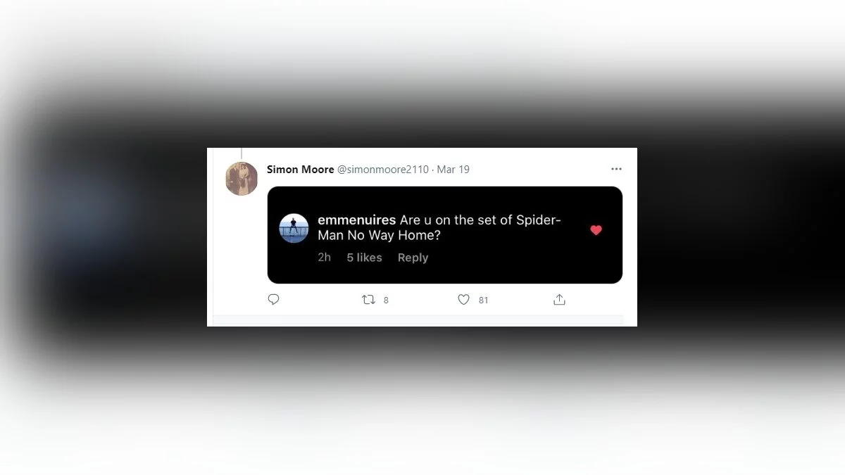 Более того, Спенсер поставил лайк под постом одного из подписчиков, который спросил, находится ли тот на съемках ленты «Человек-паук: Нет пути домой».