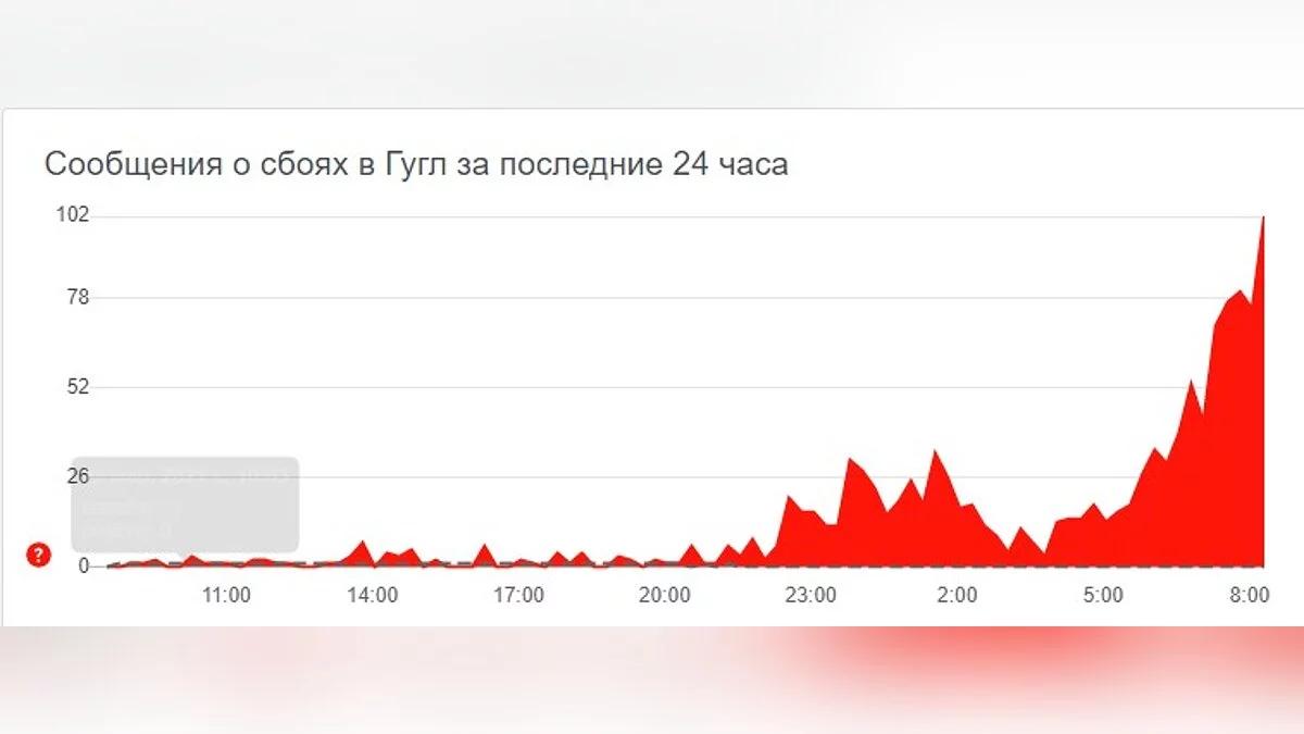 Сайт DownDetector, который отслеживает доступность всех основных сервисов в сети, сообщил о сбоях в работе Google.