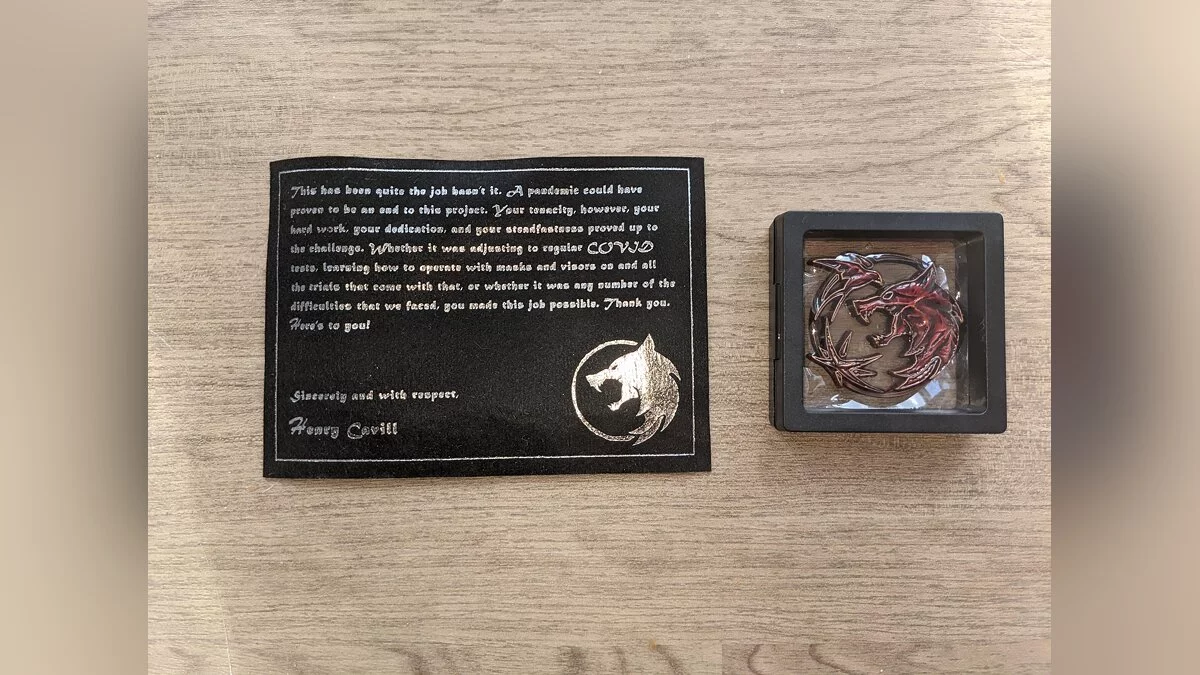 Генри Кавилл (Henry Cavill) не забыл о тяжком труде команды. По случаю недавно завершившихся съемок второго сезона актер сделал инструктору по безопасности подарок: письмо благодарности с автографом, а также памятный значок в футляре.