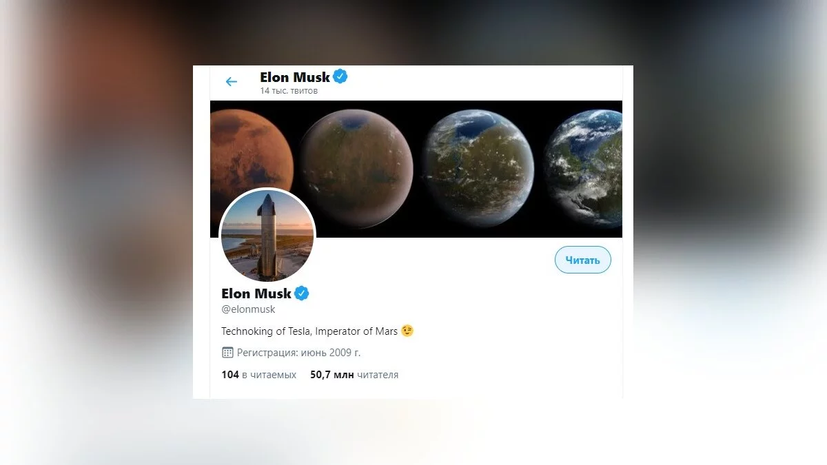 В Twitter-аккаунте Маска появилась небольшая приписка, сообщающая о том, что Маск теперь император планеты Марс: