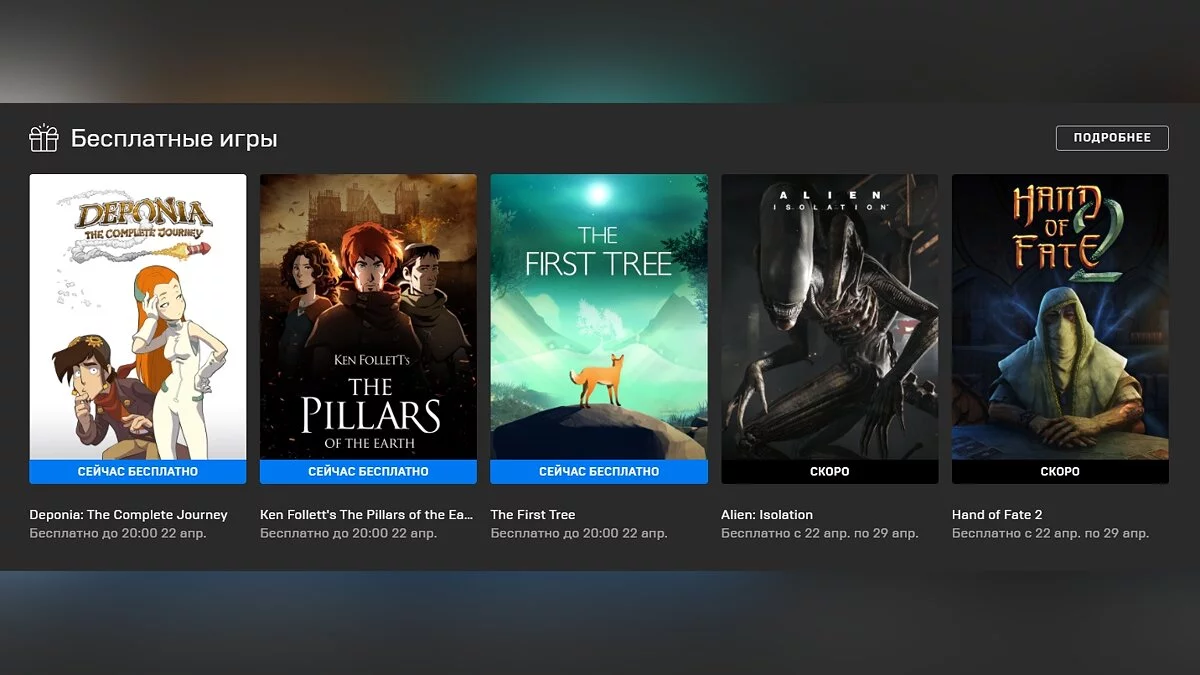 Сегодняшняя раздача в Epic Games Store неожиданно щедра на игры. Начиная с этого вечера, в магазине можно бесплатно забрать сразу 5 тайтлов. Акция продлится до 22 апреля.
