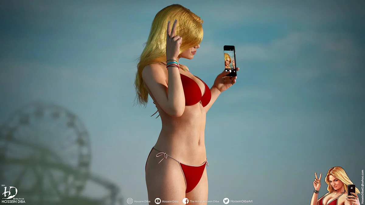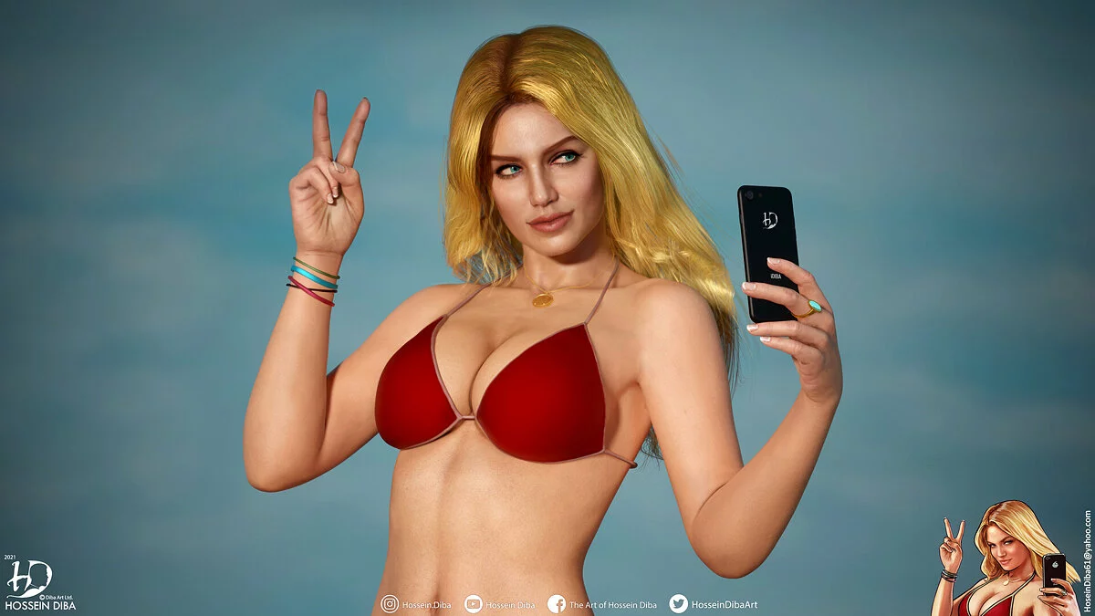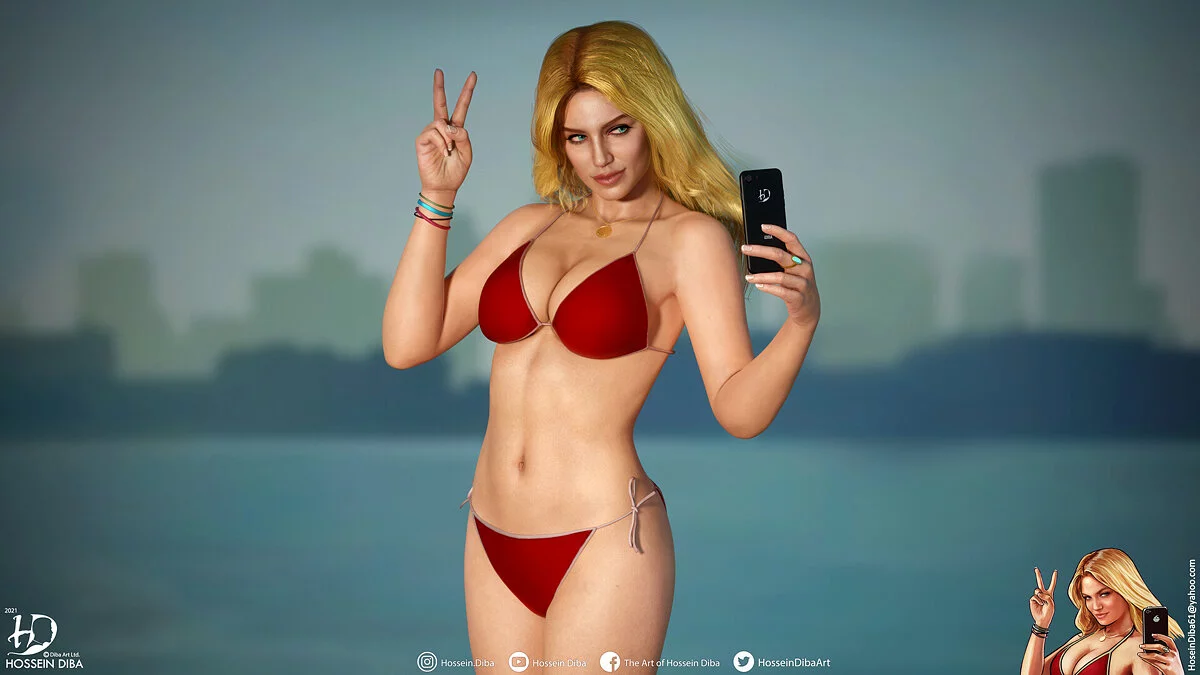 Турецкий художник Хоссейн Диба (Hossein Diba), чьи работы вы неоднократно могли увидеть на нашем сайте, перенес скандальную блондинку с экрана загрузки из GTA 5 в реальную жизнь. Ранее американская актриса Линдси Лохан (Lindsay Lohan) подала на Rockstar в суд, утверждая, что именно с нее срисовали девушку в бикини.