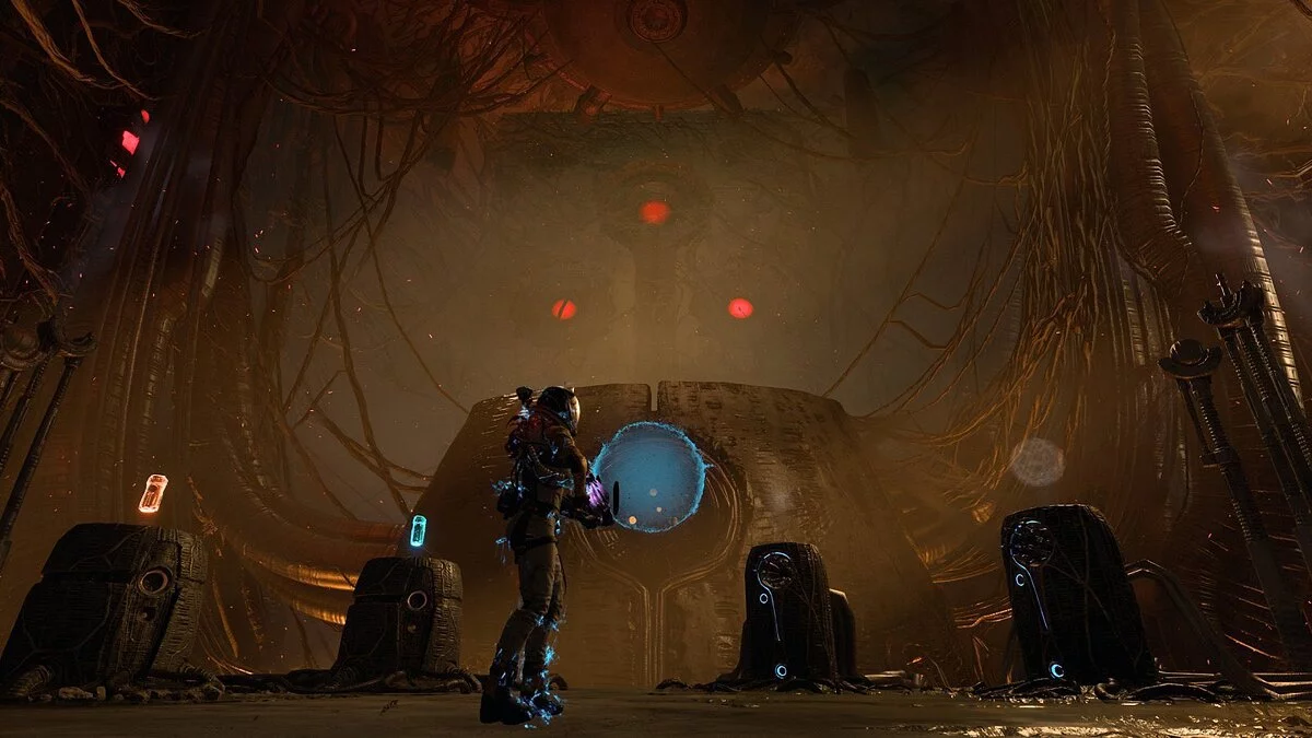 Свежие скриншоты Returnal показали красного монстра со щупальцами и коридор с лазерами