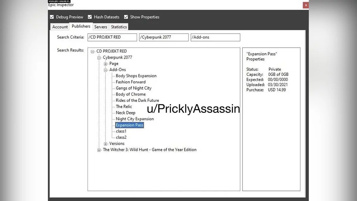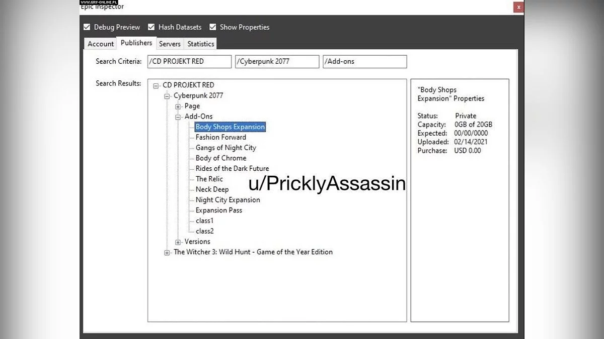 Пользователь Reddit под ником PricklyAssassin в своё время опубликовал утечку, раскрывающую список потенциальных DLC для Cyberpunk 2077. Теперь же он собрал новые данные, используя сервис Epic Inspector, который даёт доступ к инструментам разработчика Epic Games.