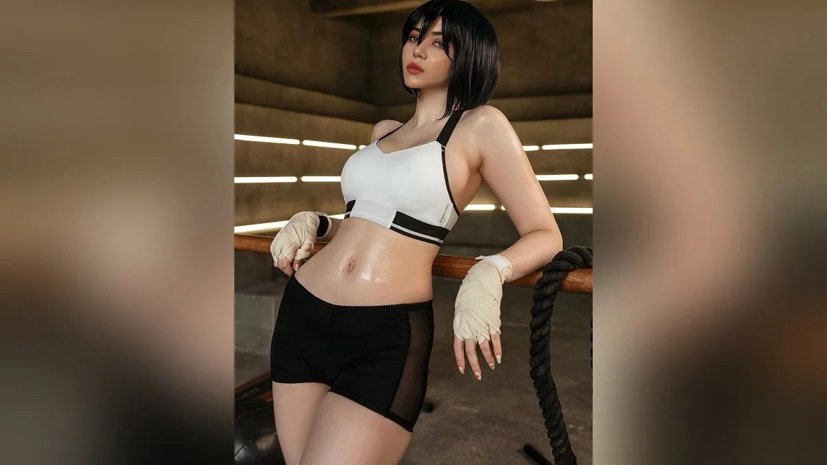В этом сюжете косплея Микаса занимается физической подготовкой. Она предельно серьёзно относится к тренировкам и поддерживает себя в тонусе.