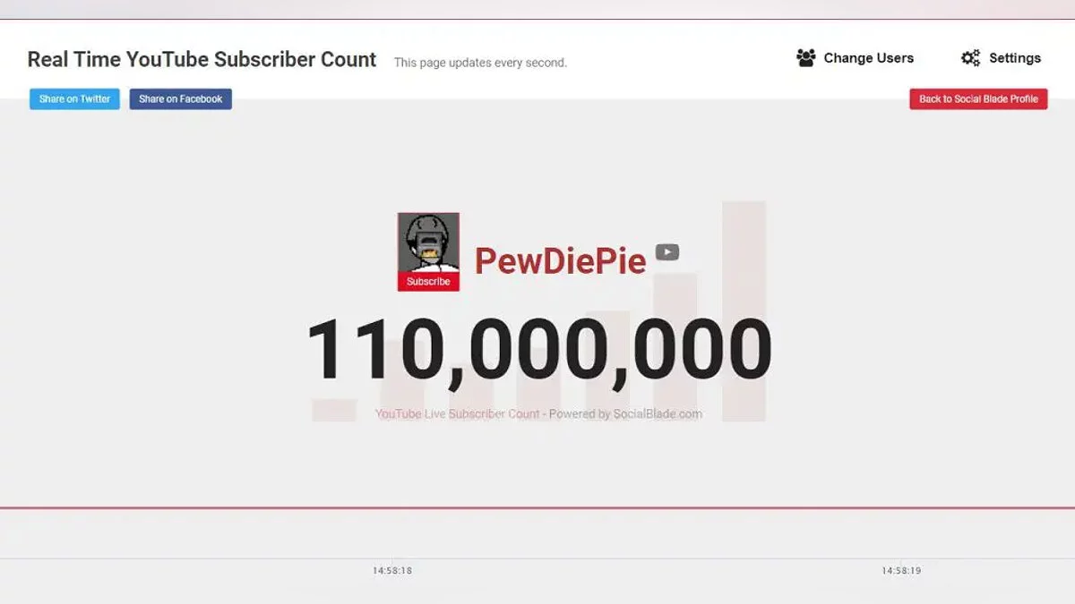 Сообщается, что на канал PewDiePie подписаны 110 миллионов пользователей. Этого результата он достиг за последние 3 года. До этого у него было порядка 60 миллионов подписчиков. При этом источник полагает, что каждый месяц аудитория будет расти ещё примерно на миллион человек, так что 120 миллионов Феликс достигнет примерно к концу текущего года.