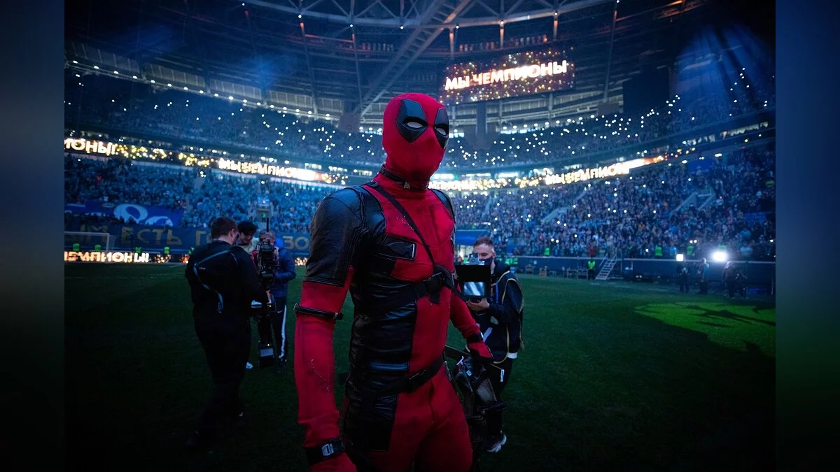 Это Дэдпул. Он умеет всё, а самое лучшее — это регенерация. Так что это я. Этот костюм у меня давно, и я хотел как-то побаловаться. Мне кажется, на третье подряд чемпионство можно себе это позволить. Сейчас дойду до раздевалки и сниму костюм. Очень жарко. Я в шлеме чуть не задохнулся. Пойдём радоваться.