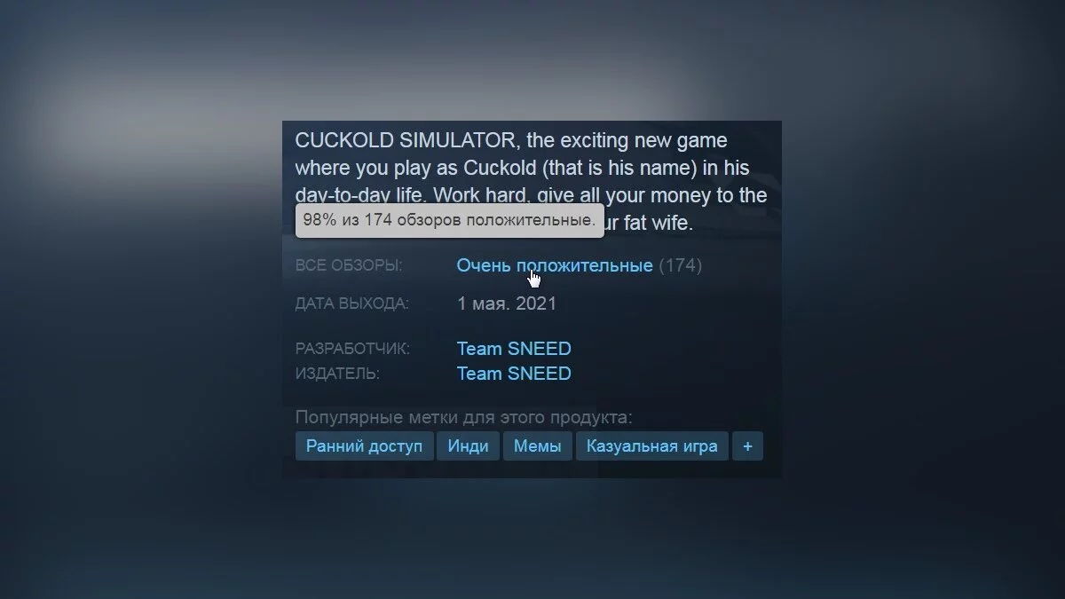 В Steam появился симулятор рогоносца. Игра получила 98% положительных отзывов