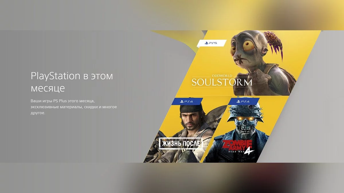 Подписчики могут забрать три игры: Days Gone, Oddworld: Soulstorm и Zombie Army 4: Dead War. Заметим, что на PS4 работают только первые два тайтла: Soulstorm доступна только для владельцев PS5.