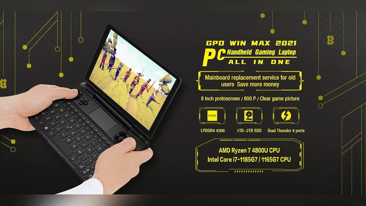 В 2020 году китайский производитель GPD выпустил компактный игровой ноутбук Win Max. Это устройство с 8-дюймовым экраном с разрешением 1280 на 800 точек, процессором Intel Ice Lake и графикой Iris Plus 940. Устройство было самым мощным на тот момент в своём классе и позволяло запускать современные игры. Но, похоже, для него ожидается замена.