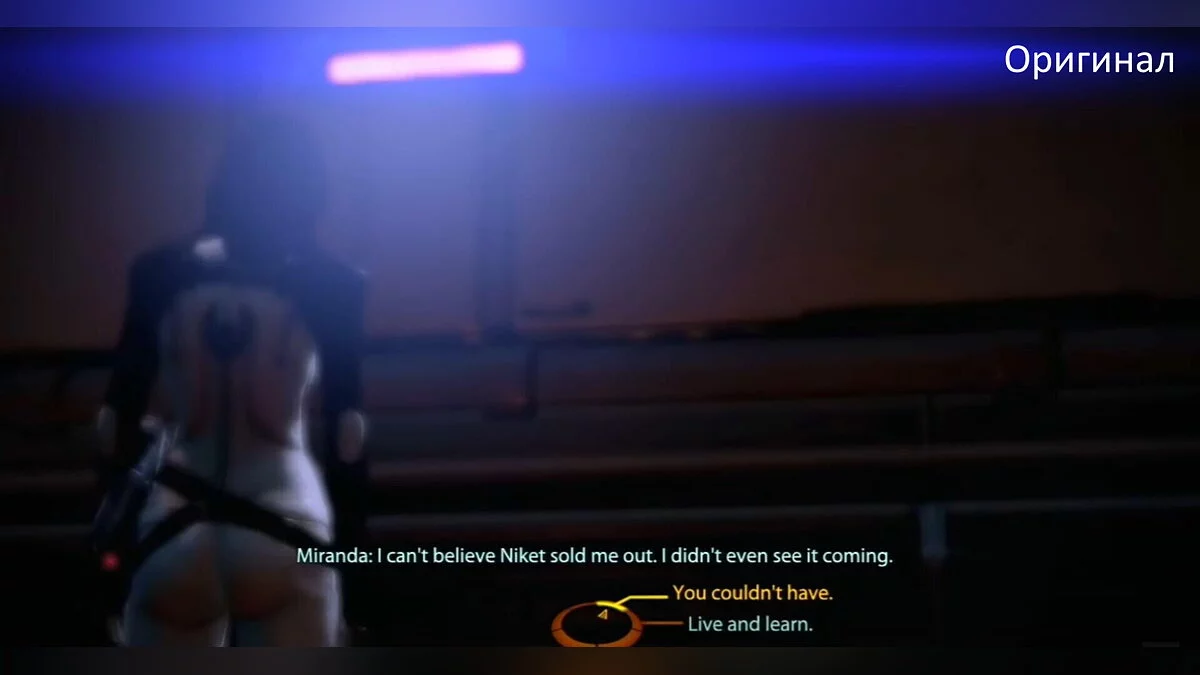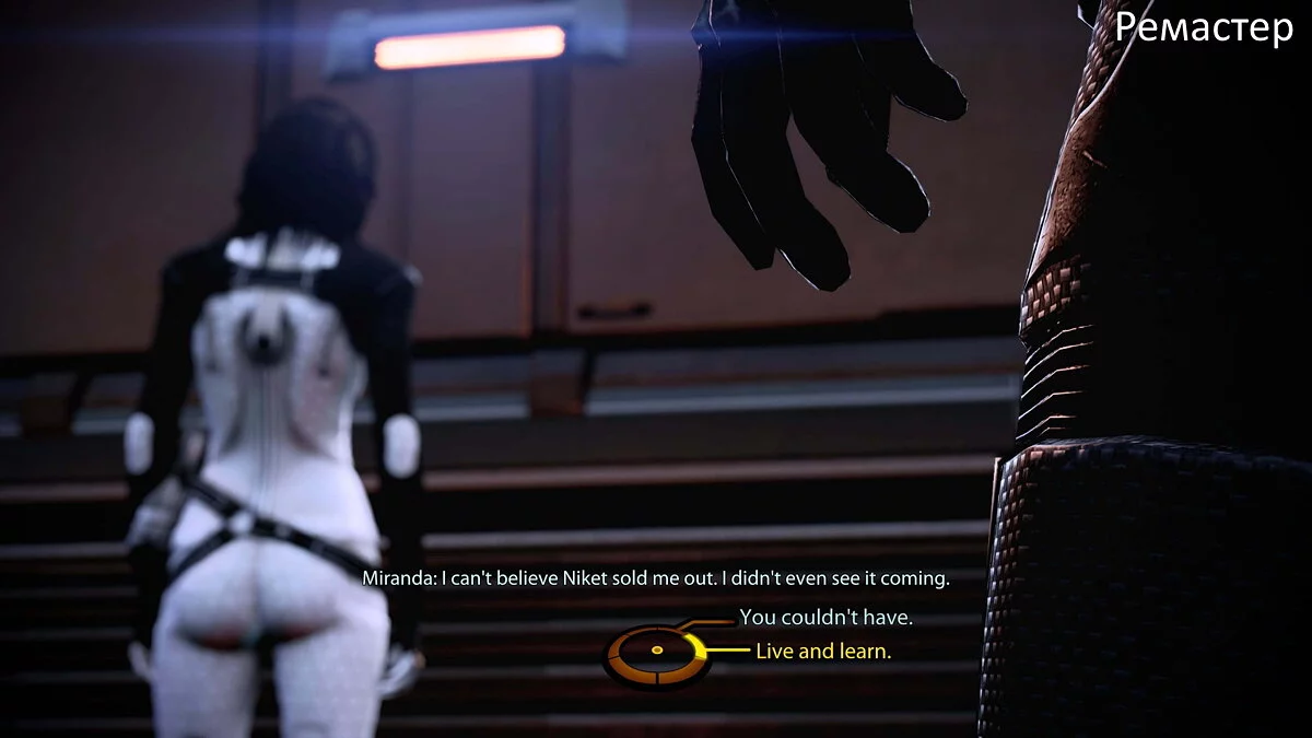 На портале DTF провели расследование и пришли к выводу, что не всё так плохо. Как оказалось, в Mass Effect 2 пострадала только одна сцена (в миссии на лояльность) — из-за смены ракурса попа Мирандры осталась за кадром. Остальные сцены разработчики решили не трогать. Более того, из-за визуальных улучшений в ремастере попа девушки стала выглядеть чётче.
