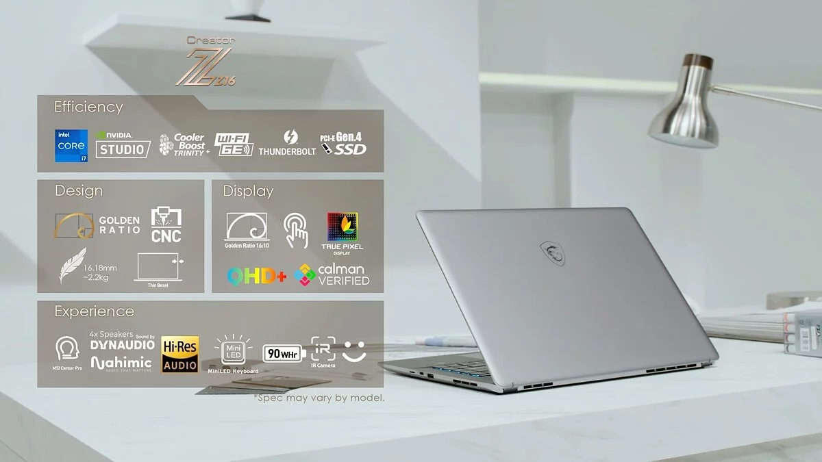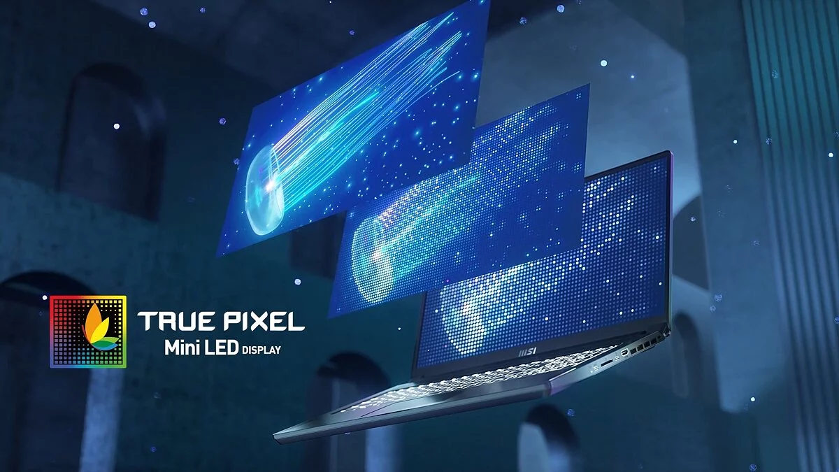 Creator Z16 поддерживает технологию MSI True Pixel, которая улучшает цветопередачу, а дисплей ноутбука откалиброван на заводе, чтобы соответствовать стандарту DCI-P3.