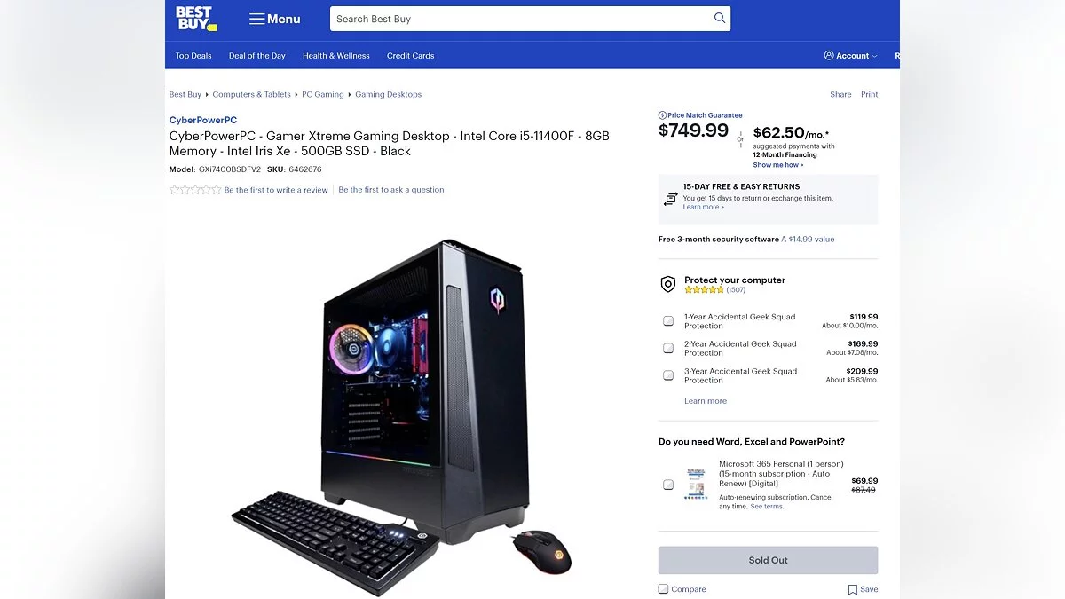 В американской торговой сети BestBuy появился компьютер Gamer Xtreme Gaming Desktop от бренда CyberpowerPC. Новинка получила процессор Core i5-11400F, 8 ГБ ОЗУ и SSD объёмом 500 ГБ, а также карту Intel Iris Xe. Цена вопроса — 750 долларов (более 55 тысяч рублей).