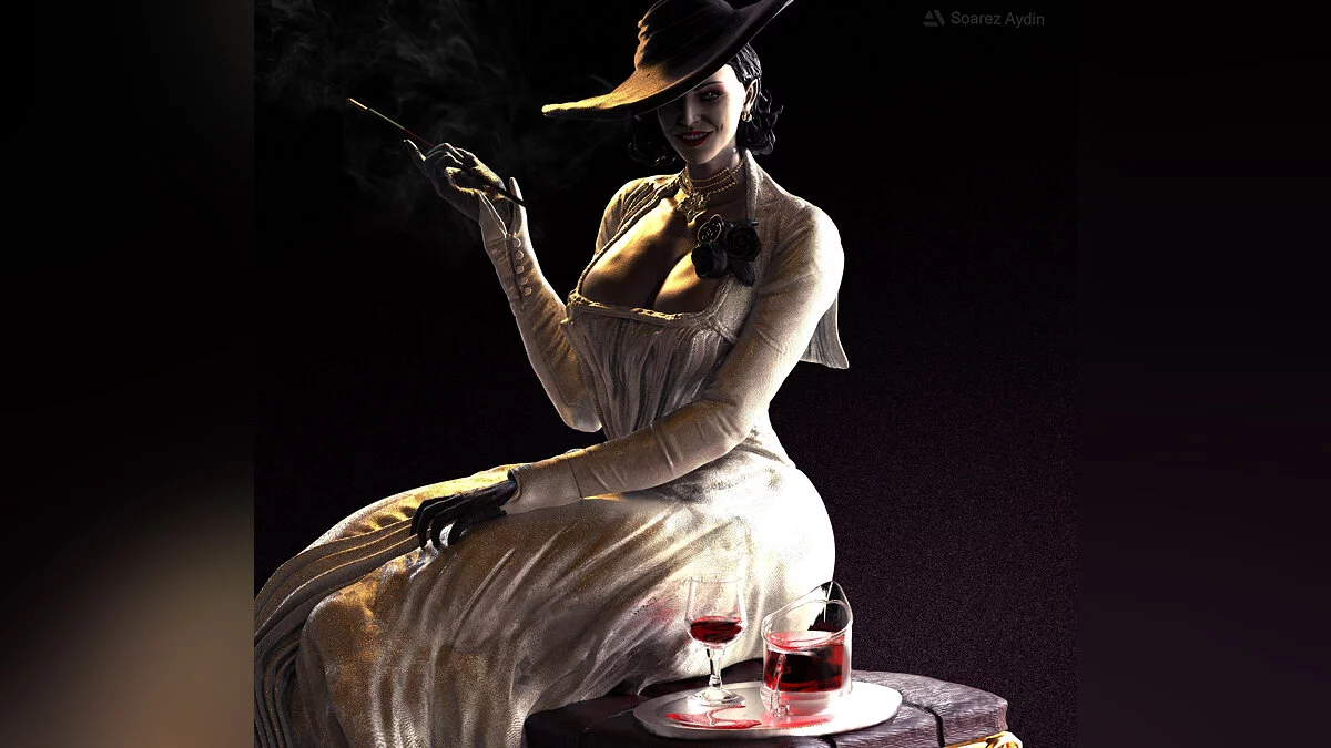 Недавно Соарез показал ещё одну фигурку Димитреску, где изобразил вампиршу с сигарой в руках, сидящую на кушетке рядом с бокалом крови.