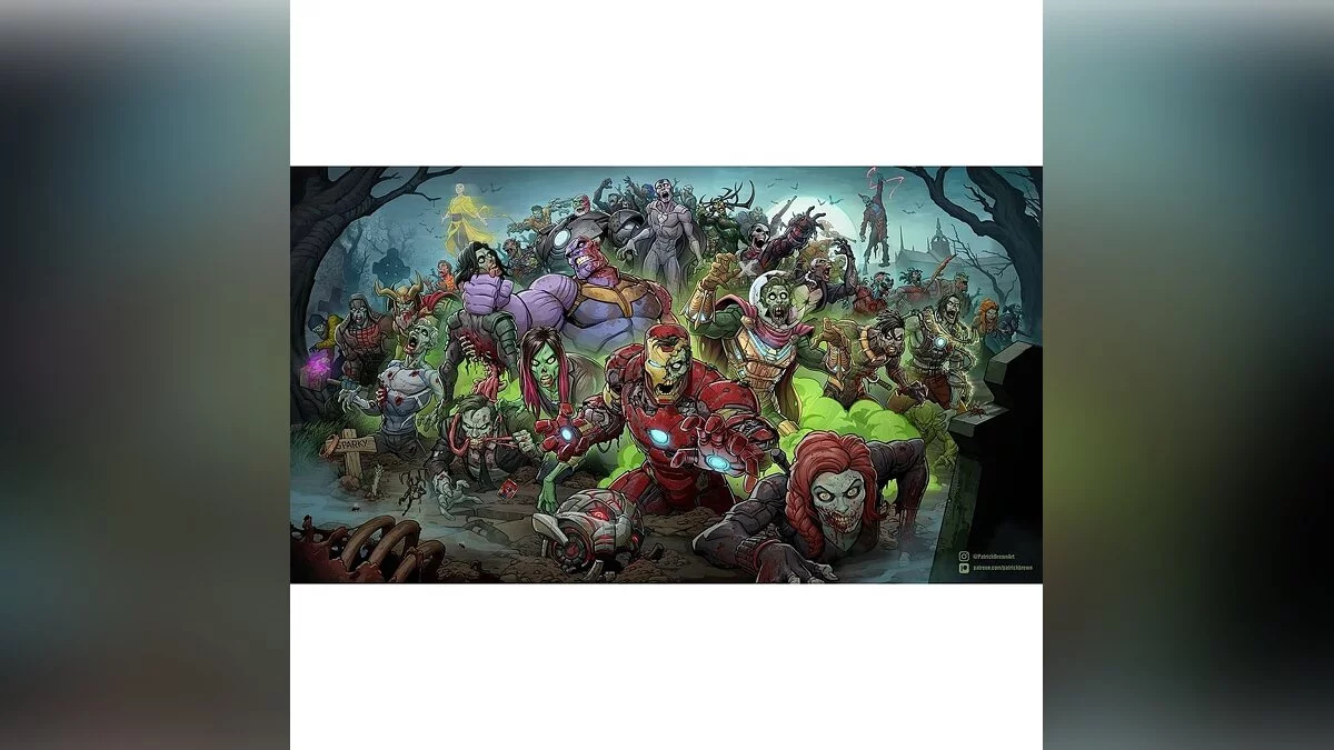 Стоит заметить, что Патрик Браун не просто показал погибших в фильмах персонажей, а превратил их в зомби в духе комикса Marvel Zombies.