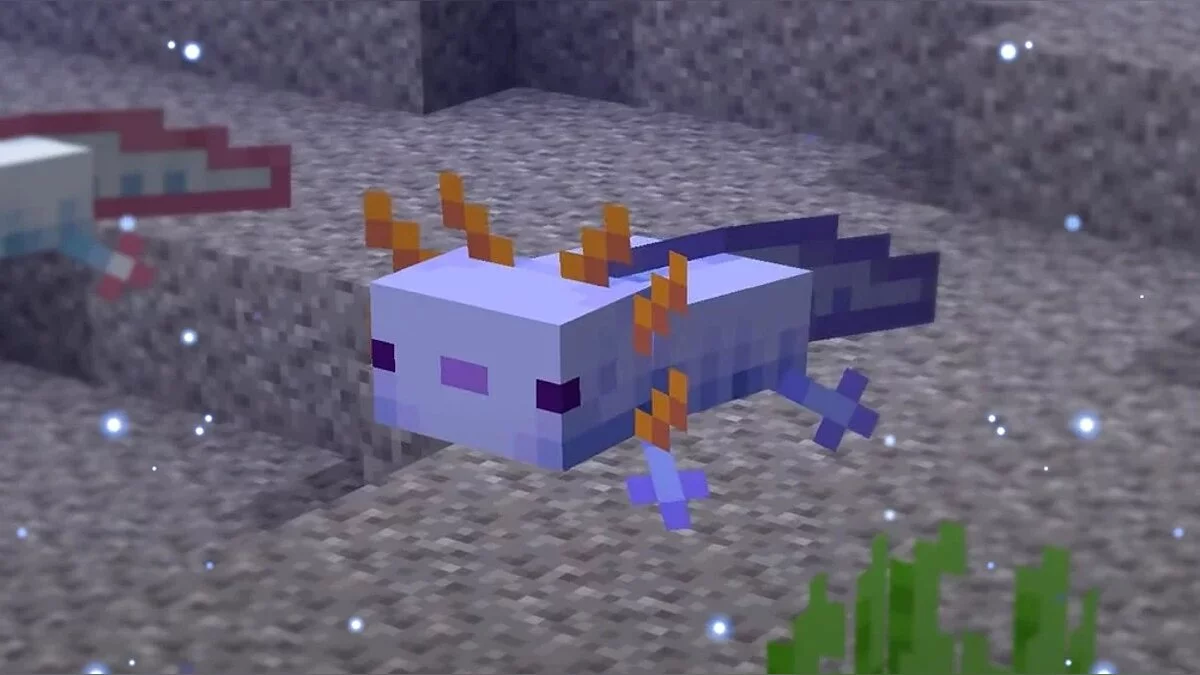 Аксолотль — мирный моб, который водится в пышных пещерах. Поскольку в первой части обновления эта область будет недоступна, игроки смогут встретить его в подземных озёрах.